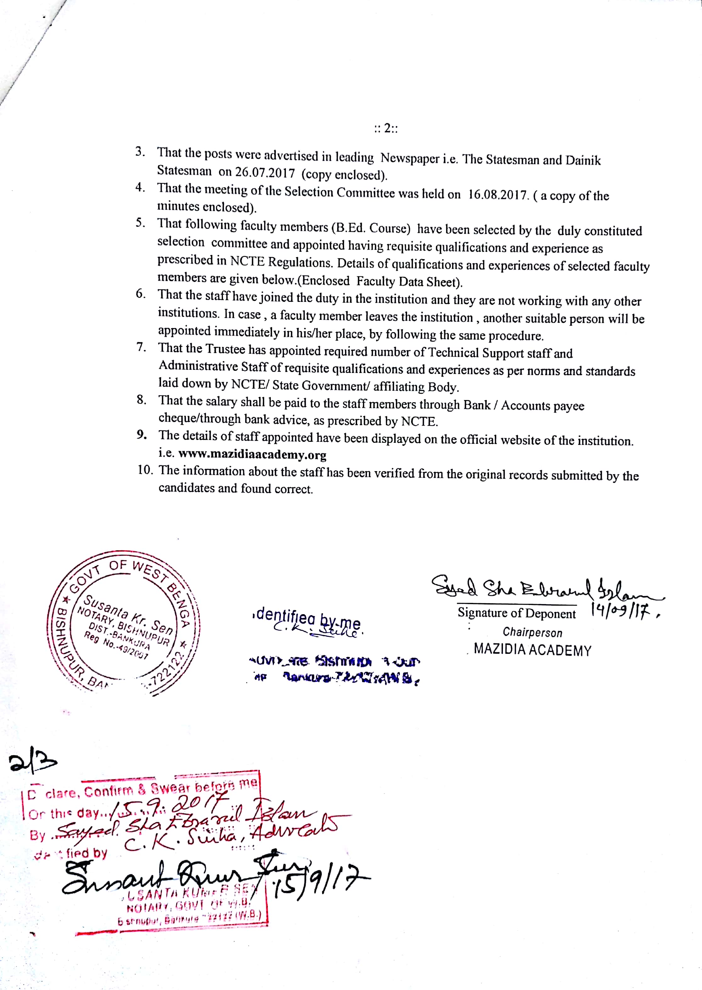 Affidavit D.El.Ed.